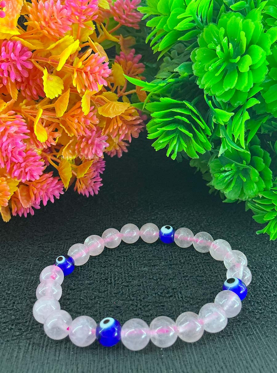 The Rose Quartz Evil Eye Bracelet combines the stone of love with the power of protection. Rose Quartz heals emotional wounds, attracts love, and promotes inner peace, while the Evil Eye charm shields against negativity and bad energies.
