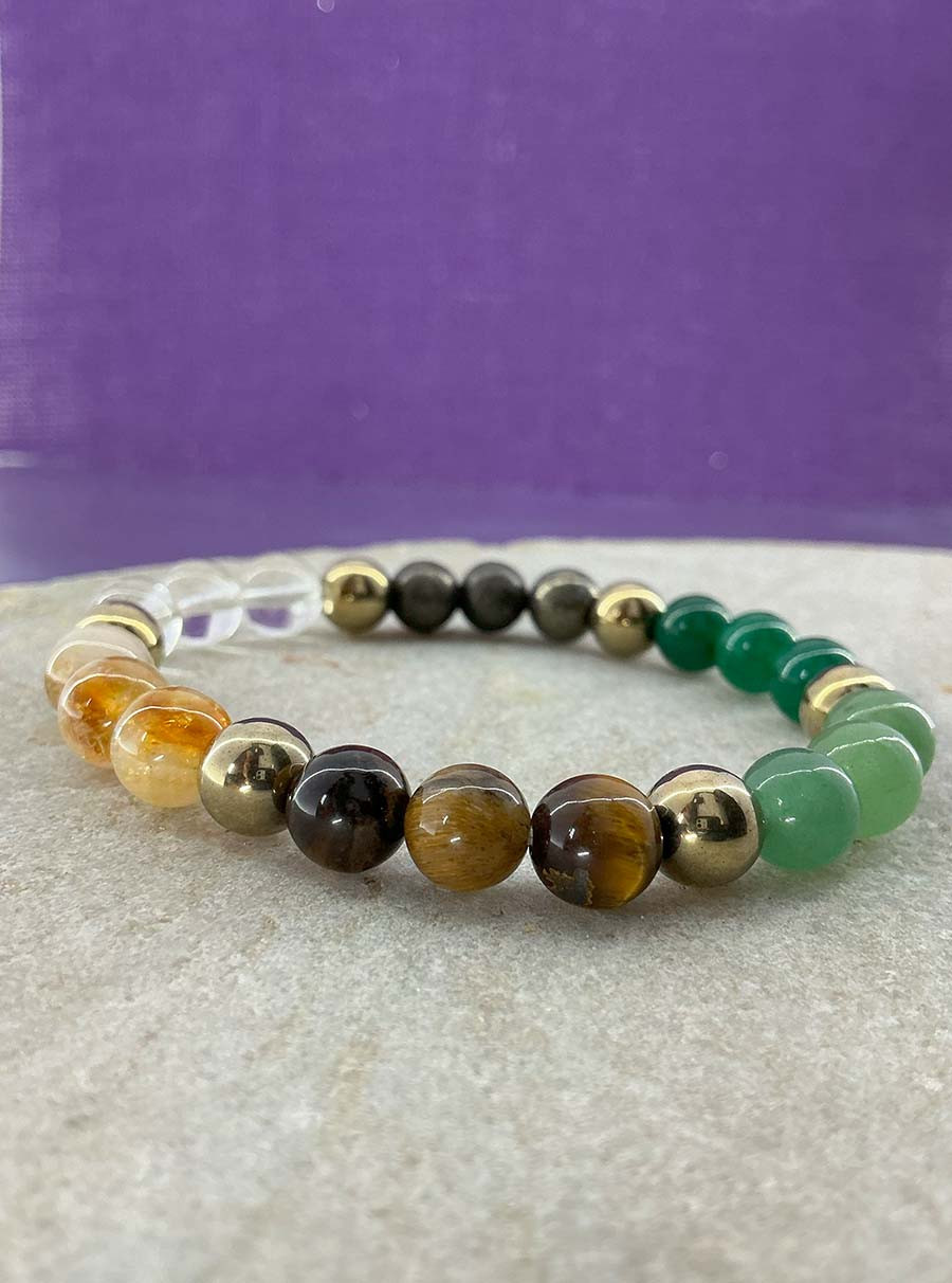 Crafted with prosperity-attracting gemstones like Citrine, Green Aventurine, and Tiger Eye