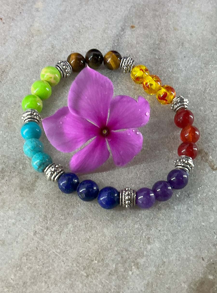 7 Chakra Bracelet with Silver Ring – a unique healing accessory designed to balance your body’s energy centers while adding a touch of elegance. Featuring seven natural gemstones representing each chakra, this bracelet promotes harmony, positive energy, and emotional well-being. The addition of a stylish silver ring enhances its charm and makes it a perfect gift.