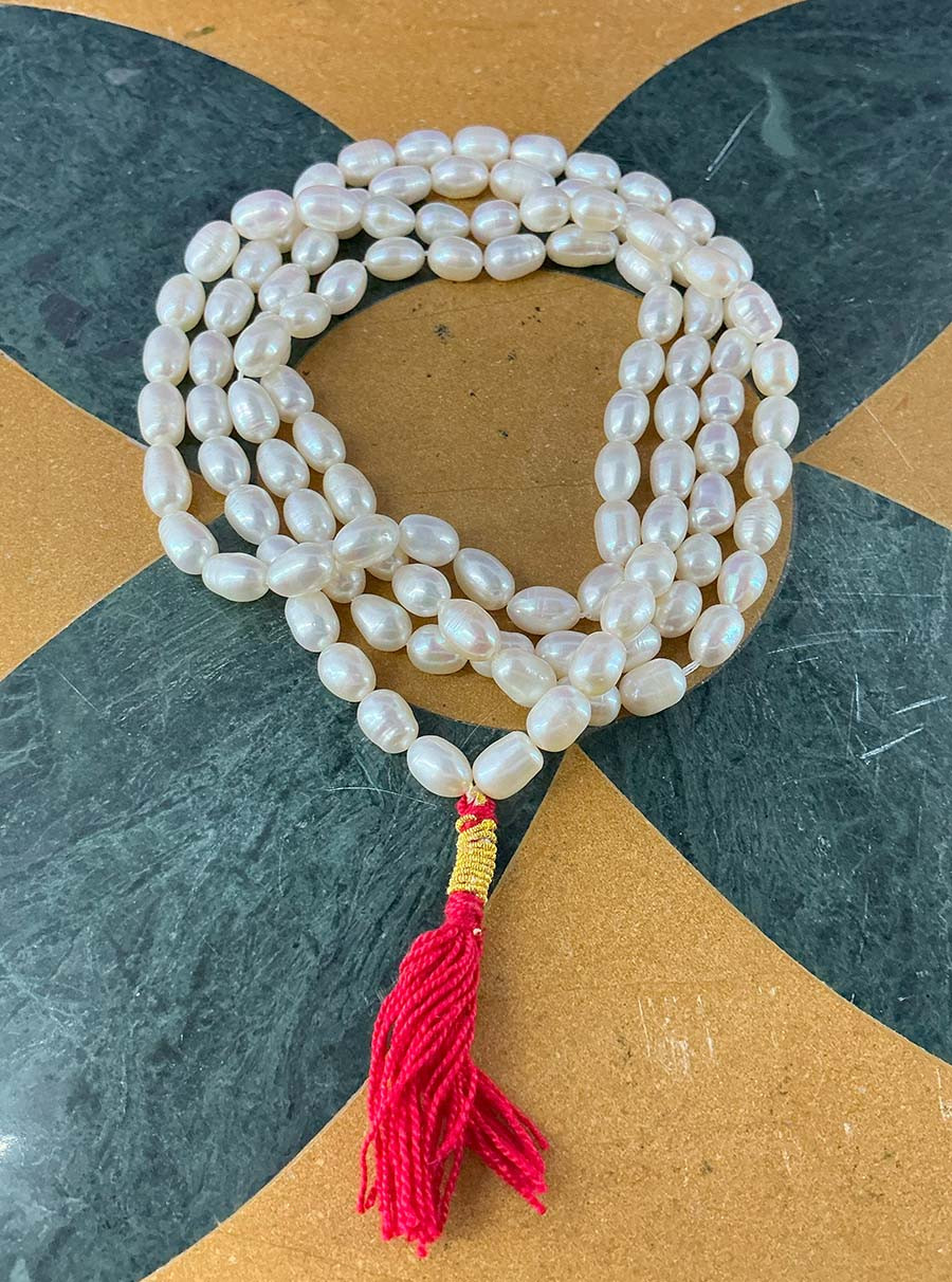 The Moti Mala is crafted from genuine, lustrous pearls, valued for their calming energy and elegance. In Vedic astrology, Moti (pearl) is associated with the Moon, symbolizing purity, peace, and emotional balance. Wearing this mala is believed to bring mental clarity, promote harmony in relationships, and attract prosperity.