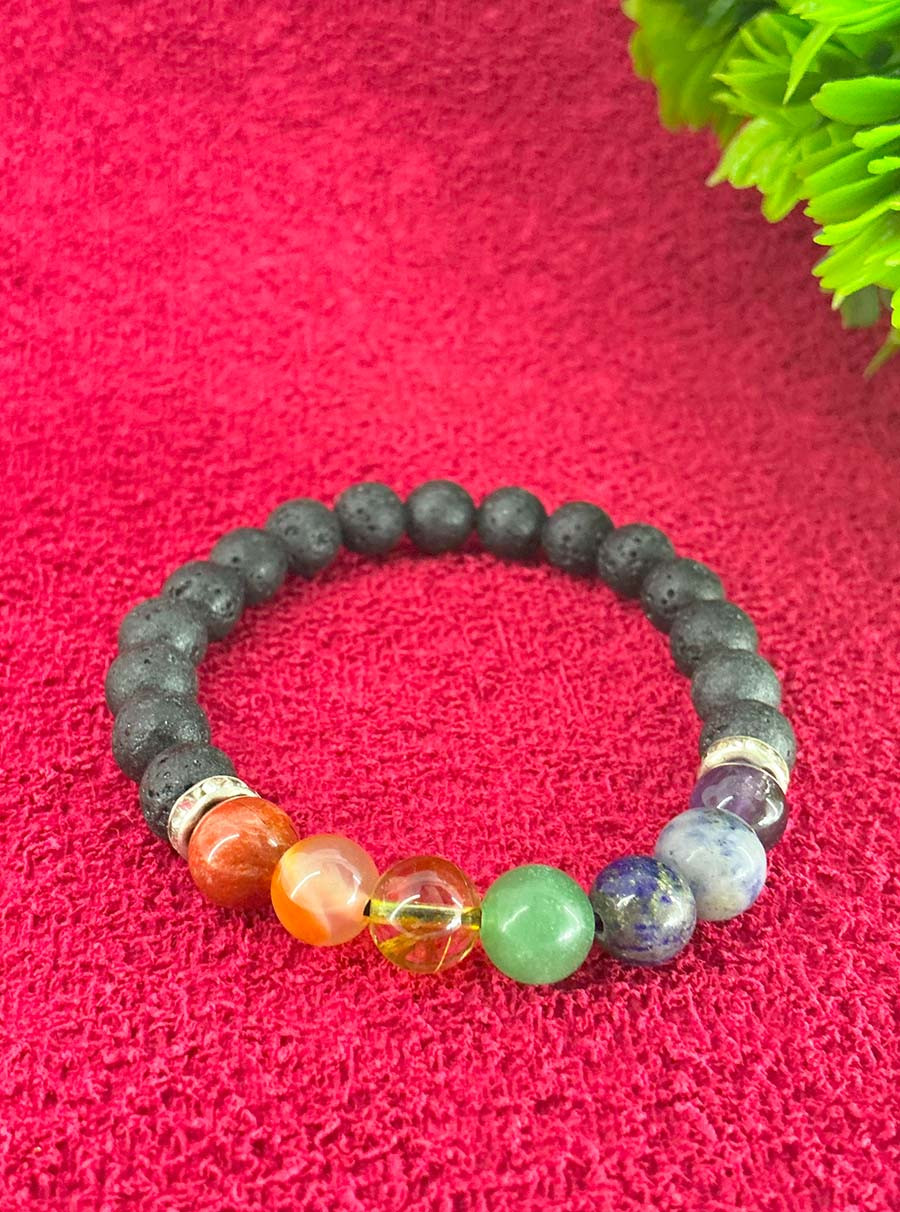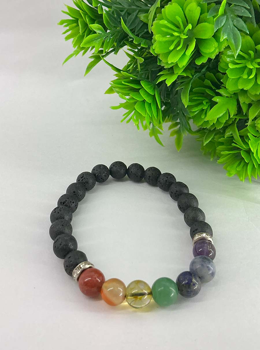 The 7 Chakra Lava Bracelet is a powerful combination of chakra healing crystals and lava stones.